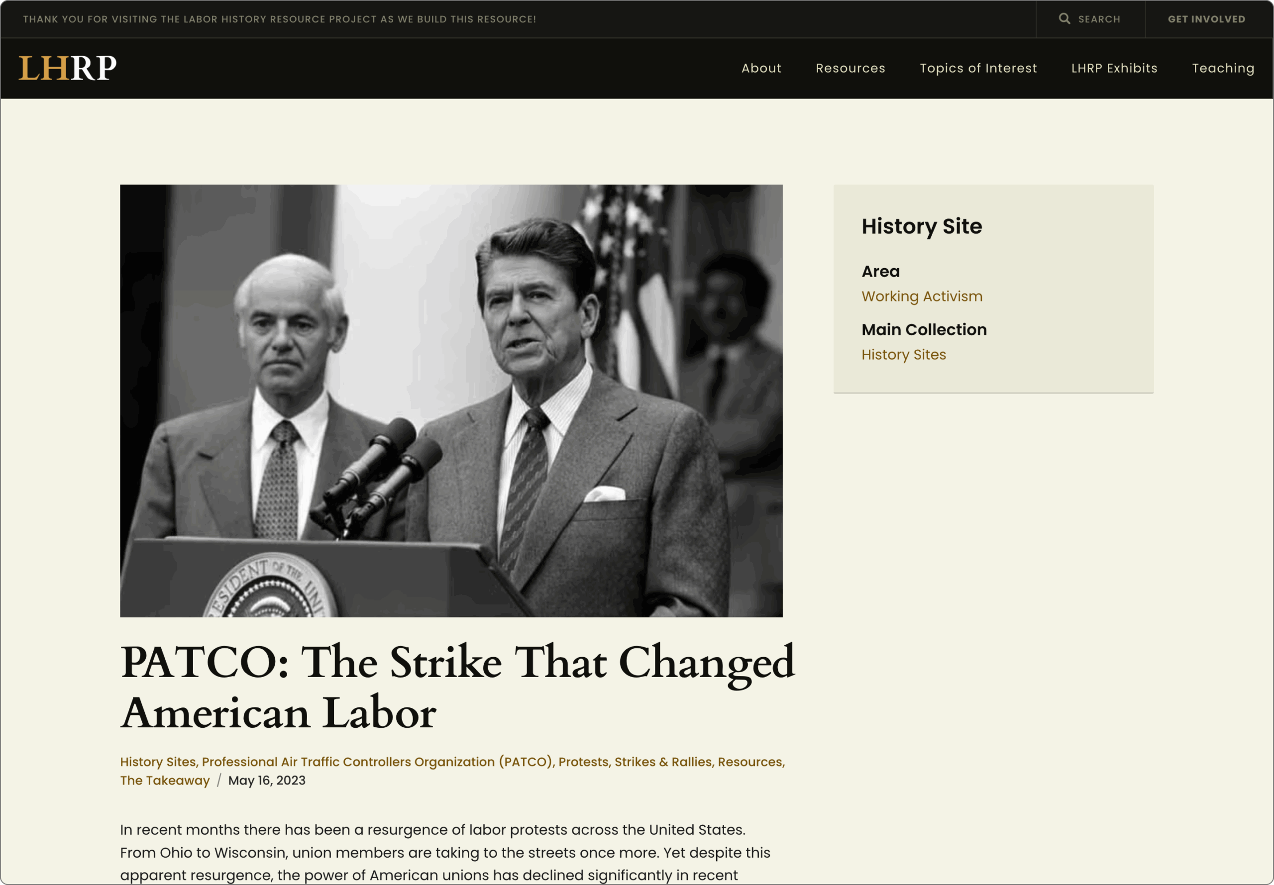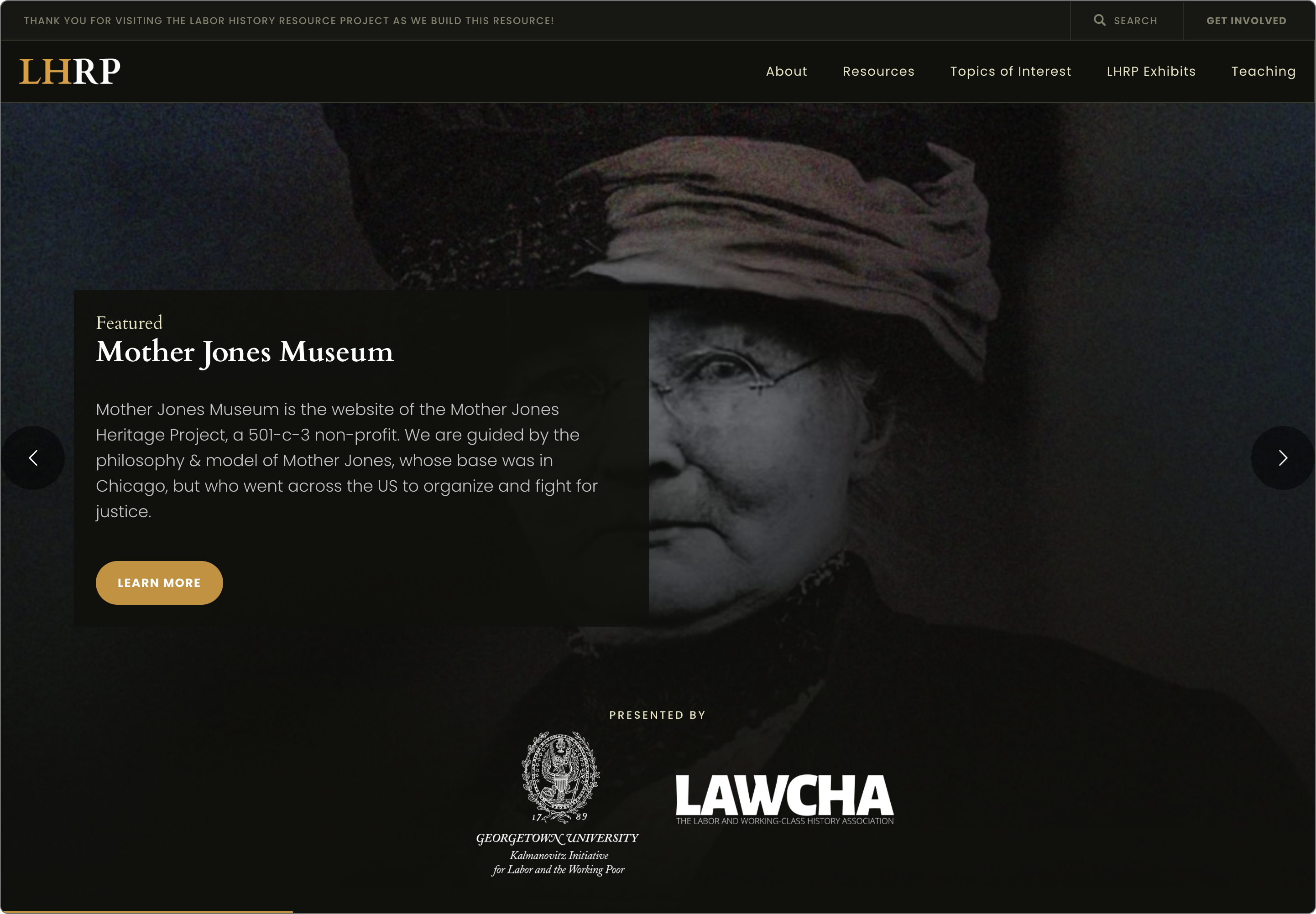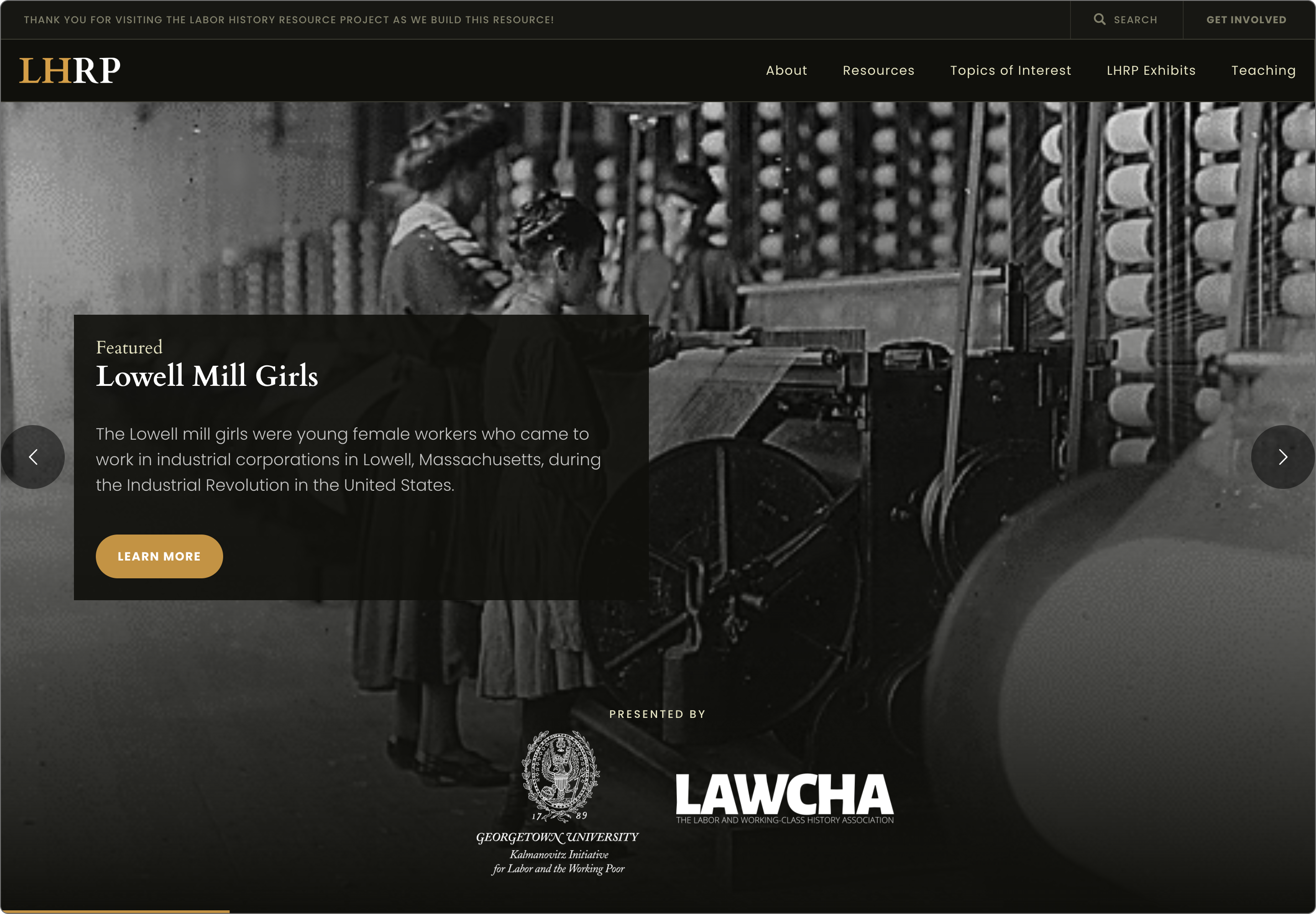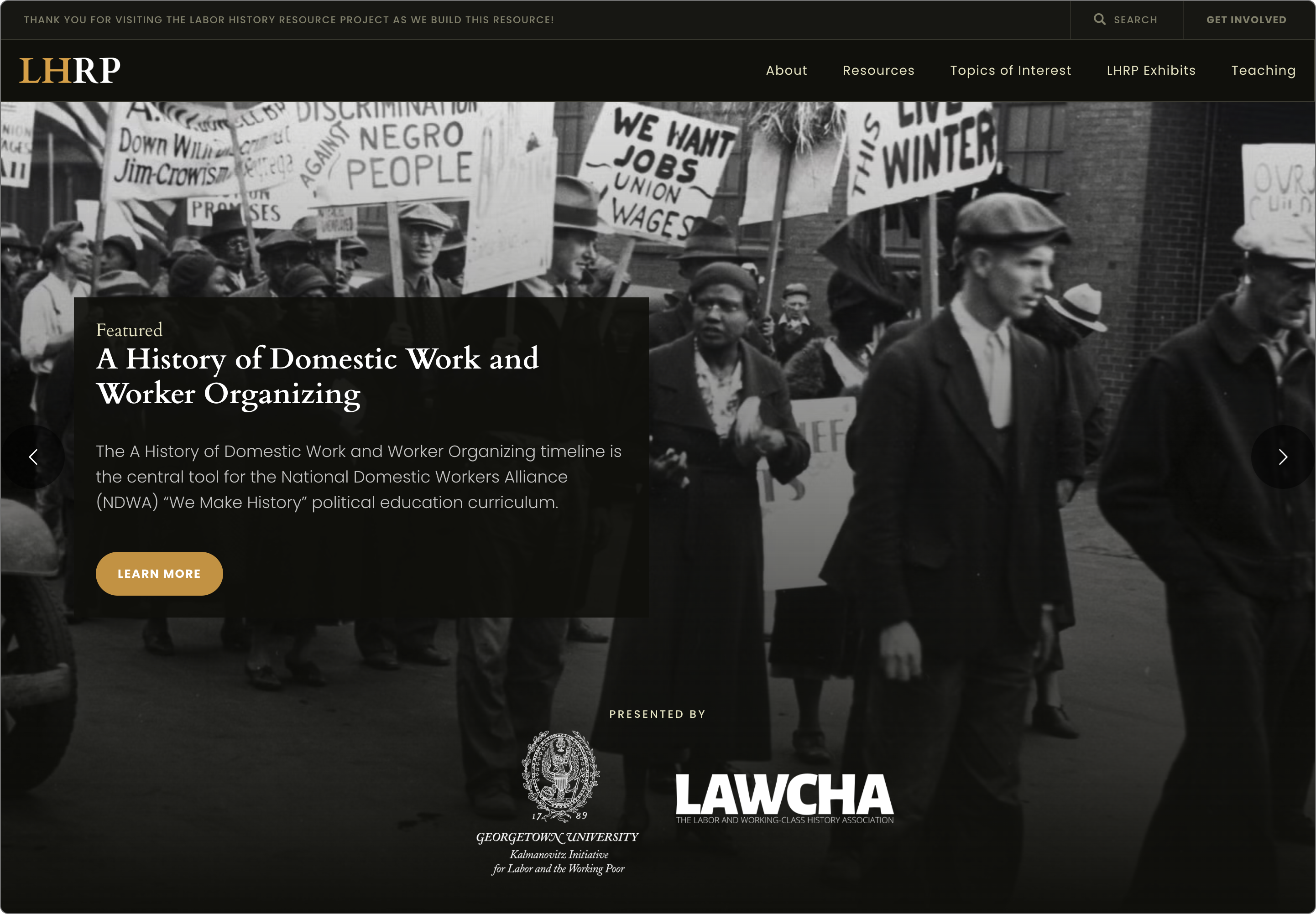 Led UX strategy, UI design, and full WordPress development for the Labor History Resource Project (LHRP), creating an accessible, research-driven platform for labor scholars, educators, and organizers.