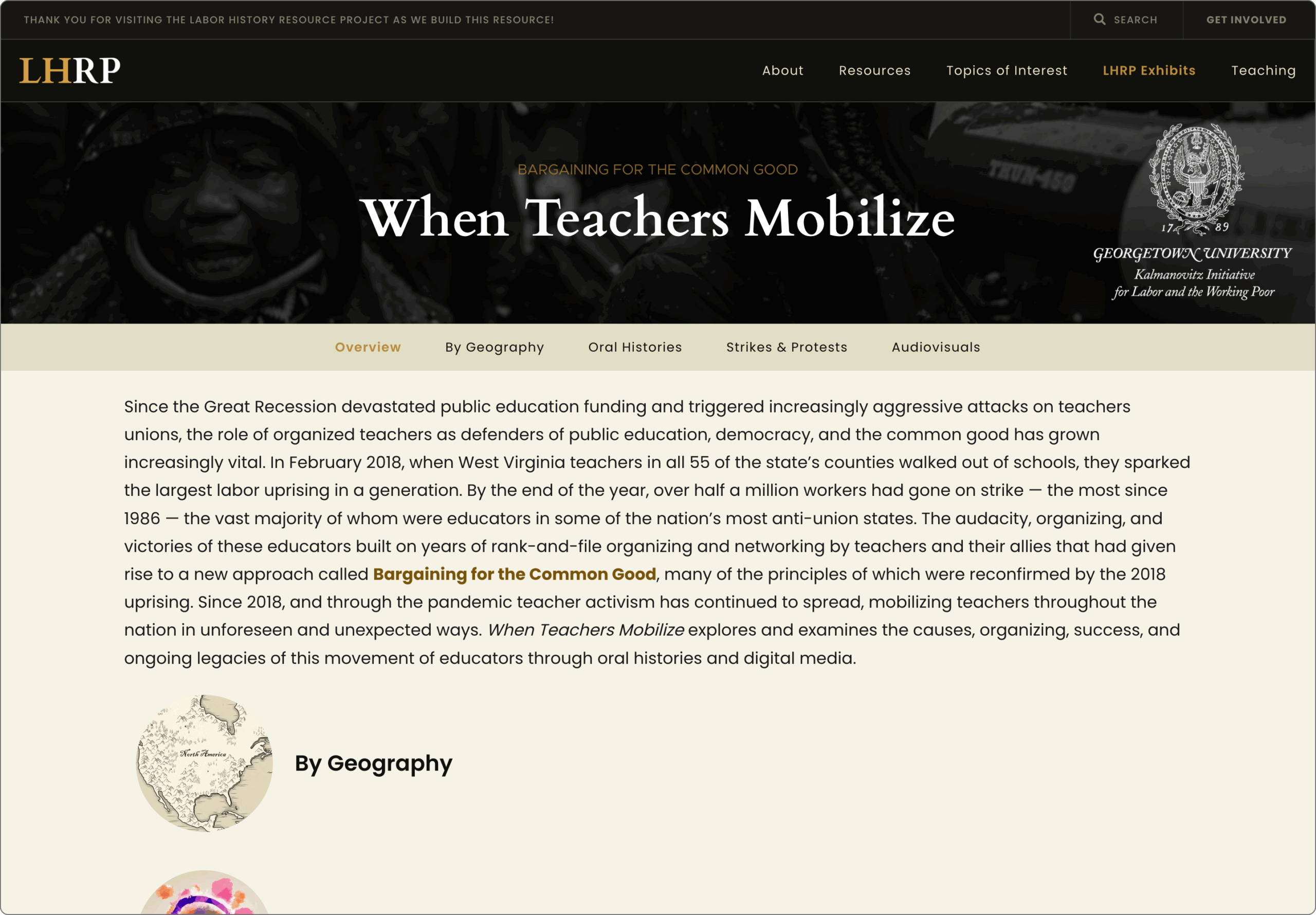 Designed and developed the When Teachers Mobilize subsite, providing cohesive UX/UI and information architecture tailored for extensive archival content and narrative storytelling.